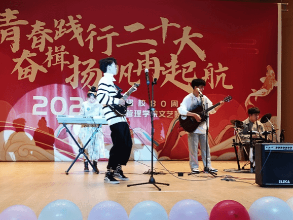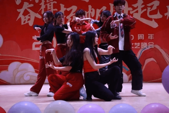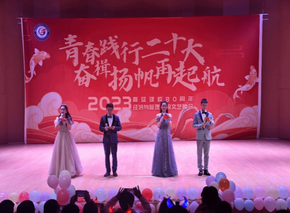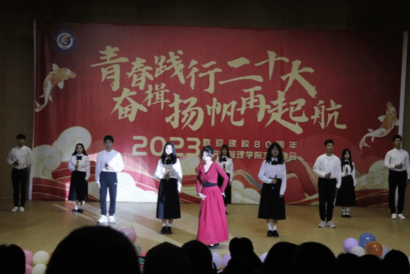 接下来的舞蹈、小品、朗诵、走秀,歌曲串烧演唱等精彩节目为观众呈现出一场丰富的视听盛宴。由朱羽茜等四名同学带来的经典歌曲串烧《唱游》把我们带入了内心最深处的青春记忆之中;由22级141班同学带来的朗诵《青春的答案》慷慨激昂,定义了当代大学生青春的丰富内涵;由雷梦星老师带领学生干部表演的唱跳《彩虹的微笑》使我们一起丢掉烦恼,向快乐出发;22级142班带来的小品《上学那些事》让我们回味起高中生活的点点滴滴,让人捧腹连连;伴着悠悠古风伴奏,华章汉服社的同学们列队走向舞台,一步一莲花典雅别致,举手投足间尽展古韵美感,让我们身临其境的感受到了中华民族传统文化的魅力;22级班助们带来的青春活力秀《被套也疯狂》给观众带去了不一样的视觉冲击;九点半乐队带来的歌曲《Yellow》赢得现场观众疯狂打call;青春因梦想而绚丽,因奋斗而美丽,由未命名动漫社带来的舞蹈《Start true dreams》一起炫动未来;我院辅导员黄卓航的出场将现场氛围直接拉上高潮,同学们纷纷挥动手中的荧光棒,跟随黄卓航老师一起哼唱《想见你想见你想见你》;经管学院舞蹈大赛的同学们带来的舞蹈《启航》慷慨激昂,用青春点燃爱国热情,用信仰描绘出美好明天;由李学炜、黎雨悦两位同学带来的朗诵《坚定决心跟党走,团结共筑中国梦》赞颂中华民族一家亲。最后ok138cn太阳集团“青春践行二十大,奋楫扬帆再起航” 暨庆祝建校八十周年文艺晚会在由彭桦老师、王春茹老师带领经管学生会表演的舞蹈《New Boy》中落下帷幕。
