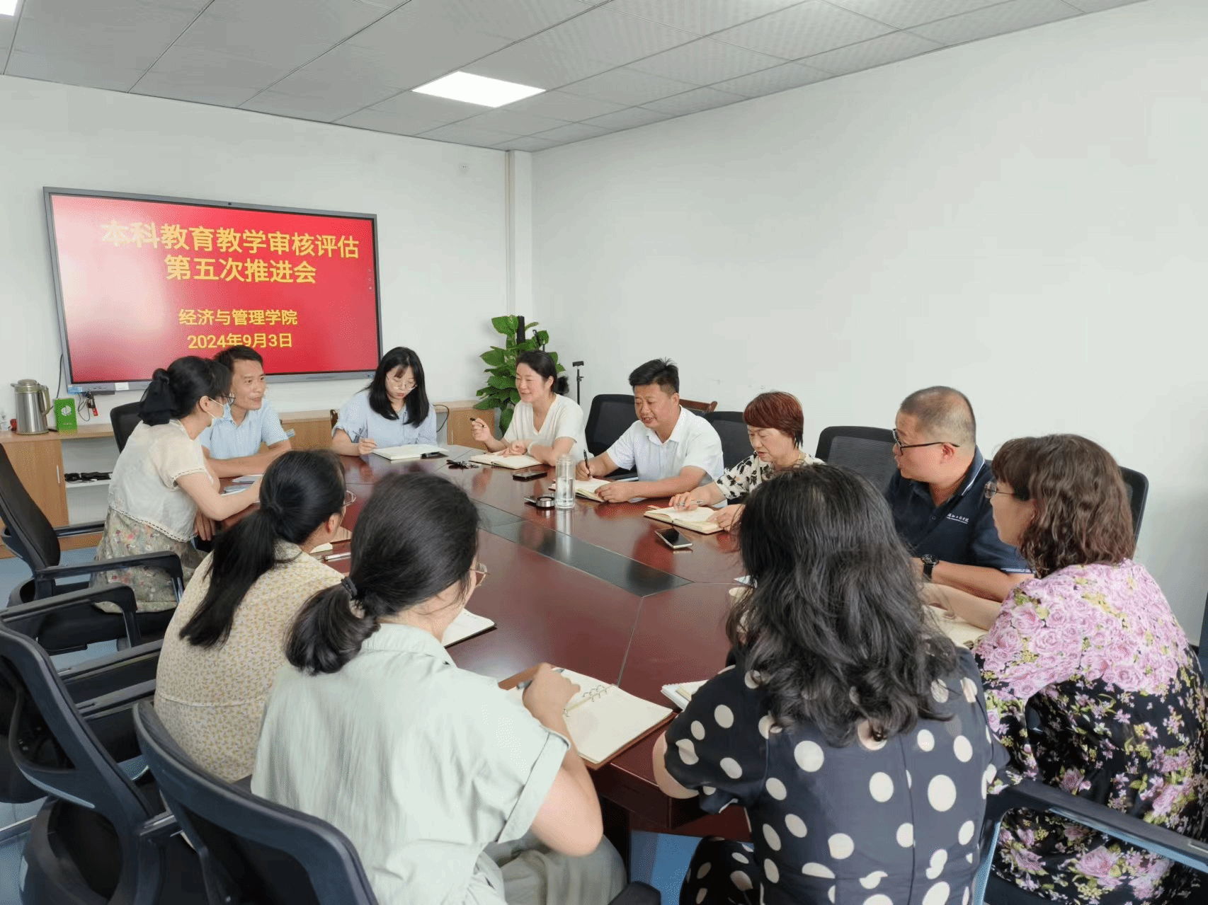 为扎实推进本学期的本科教育教学审核评估工作,2024年9月3日上午,我院召开了本科教育教学审核评估第五次推进会,学院本科教育教学审核评估小组全体人员参加。