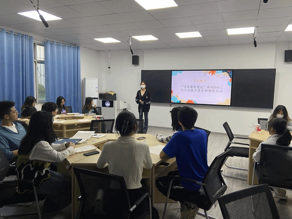 3月10日下午6点,经管学院在402教室举办了寻找“最美学习笔记”系列活动之学习交流分享会和颁奖仪式,会议由辅导员王春茹老师主持,获奖选手、和22级部分同学参加了活动。交流学习分享会上,22级学生观摩了学姐们带来的学习笔记,并进行交流和探讨。来自21经济学142班的梁莫函分享了记笔记的方法:“我会把老师上课讲的重点内容在书上记下来,把重点部分的PPT拍照记录,下课后再汇总到笔记本上,重点内容我会用红笔和特殊符号来标记,最后每一章节都会做一个框架图或者思维导图来帮助理解和复习。”会后,由辅导员王春茹给获奖者颁发了奖品和荣誉证书。