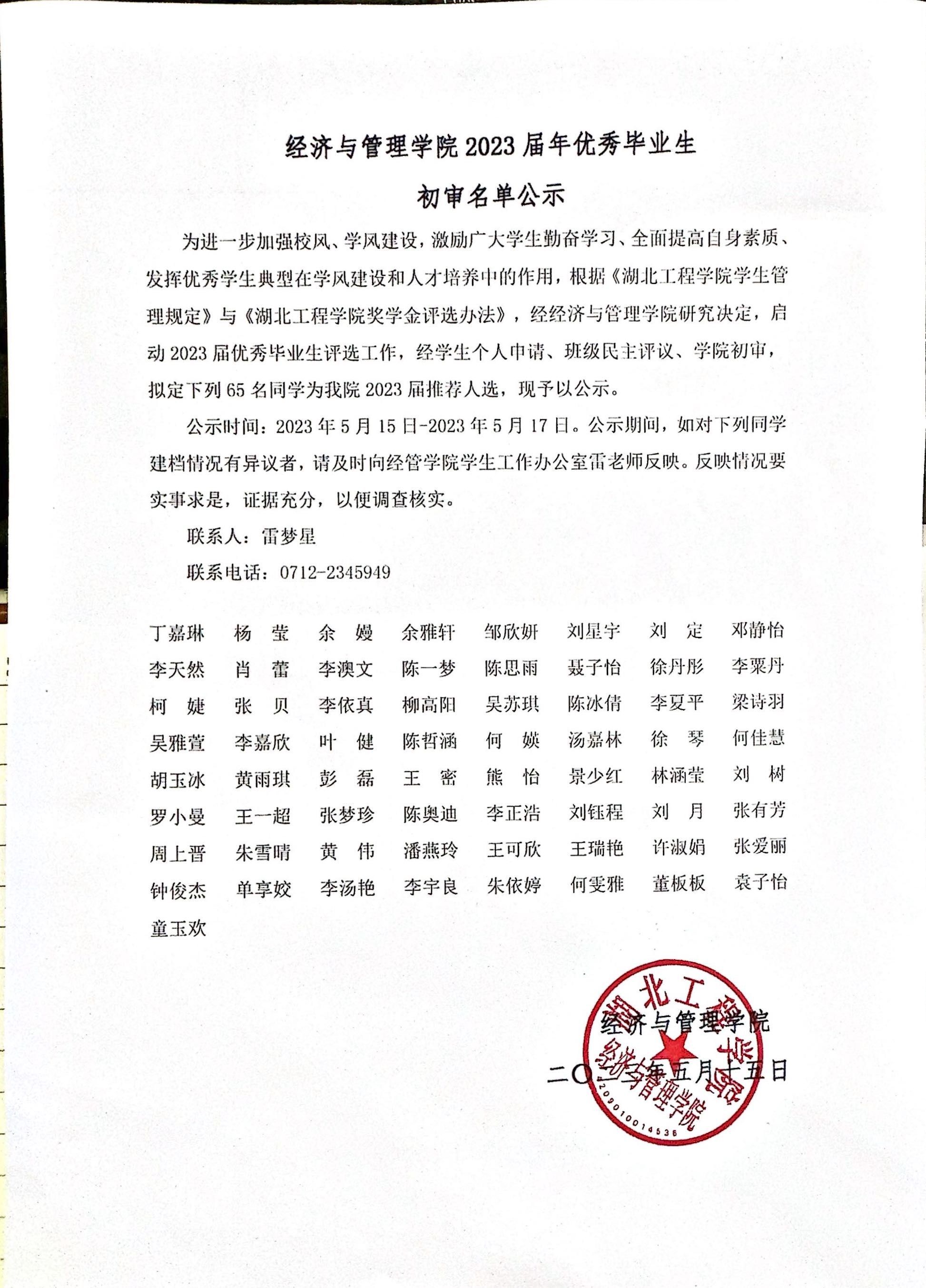 ok138cn太阳集团2023届年优秀毕业生 初审名单公示