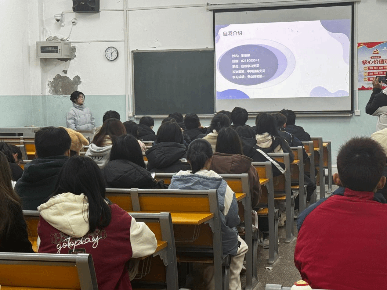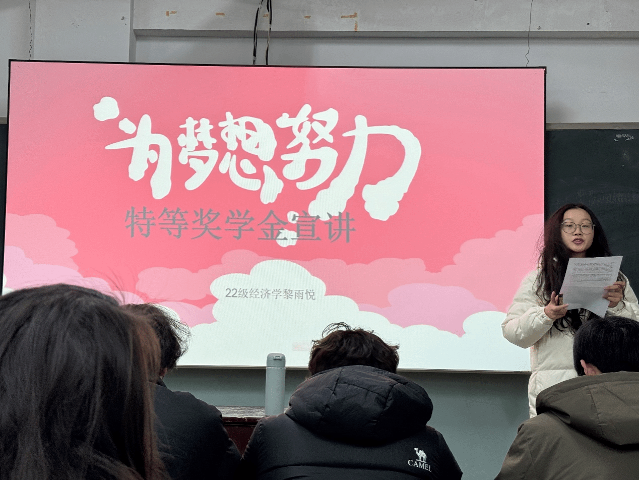 国家奖学金和校级特等奖学金获得者黎雨悦同学在24级经济学专业班级进行了学习经验分享交流,她倡导“日拱一卒 功不唐捐”理念,指出学习要注重课堂效率,对学科针对性复习,合理分配期末时间,找到适合自身的学习方法,做好预习复习,同时还鼓励学弟学妹们积极参与学科竞赛、考级考证。