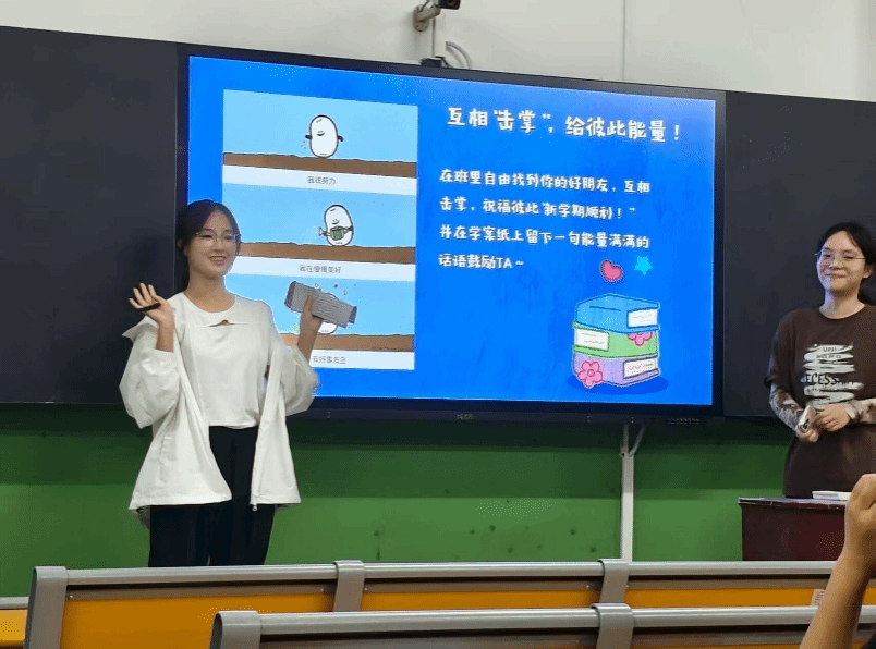 活动在温馨的“相互击掌,为你加油”中圆满结束。同学们自由结对,彼此击掌祝福“新学期顺利”,并在清单上留下鼓励寄语,传递温暖与力量。整个班会过程氛围融洽,同学们积极参与、真诚分享,在互动中增强了心理韧性,提升了集体凝聚力。