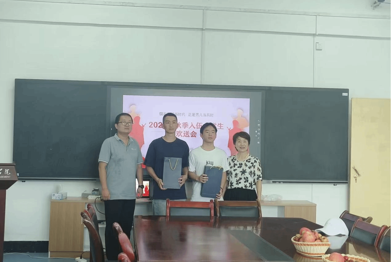 随后,辅导员老师们也纷纷发言,表达了对入伍学生的不舍与祝福。老师们希望他们能够保持身心健康,迎接军旅挑战。鼓励他们将学院的培养与期望化作前行的动力,在军营中建功立业,为学院争光,为国家添彩。
