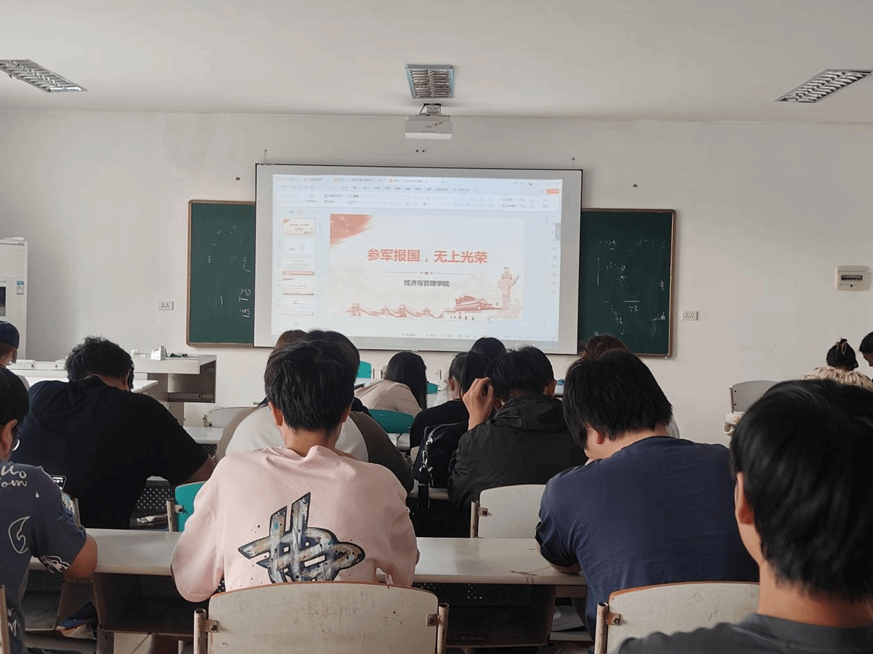 针对大学生普遍关心的应征报名问题,班主任老师清晰说明了报名条件、关键时间节点、全国征兵网操作流程以及后续体检政审环节等具体内容,让同学们能够清晰掌握流程。班会现场,同学们认真聆听、积极咨询。班主任老师鼓励同学们把握时代机遇,响应祖国召唤,让青春在火热的军营中淬炼成钢、绽放光芒。此次主题班会不仅普及了国防知识,更在经管学子心中播下了从军报国的种子。