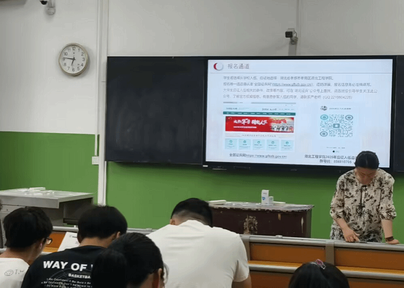 班主任老师还详细介绍了国家及地方鼓励大学生参军的最新优待政策,涵盖学业保障、优抚补助及退役升学、就业创业等多方面支持,让同学们真切感受到了“一人参军、全家光荣”。