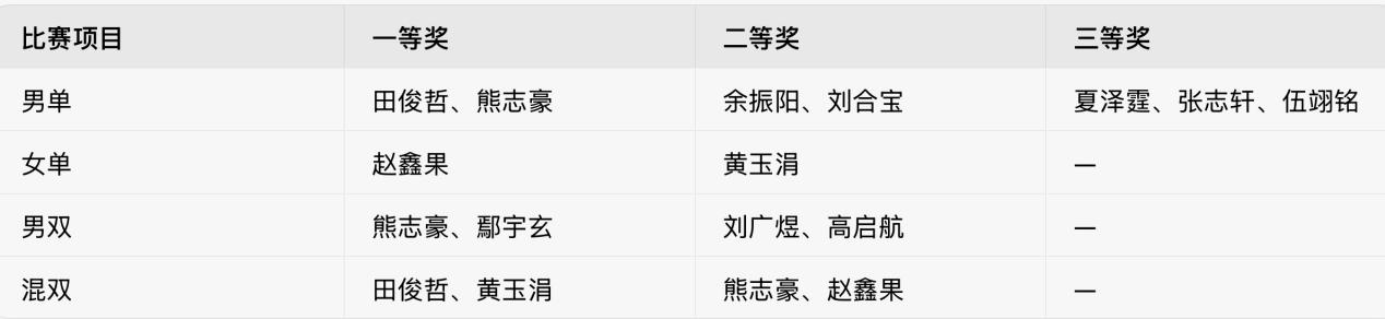 赛场上,参赛学子始终恪守“友谊第一,比赛第二”的体育精神,在比分胶着时沉着应对,在落后追赶时绝不言弃,充分展现出经管学子积极向上、奋勇争先的青春风貌。伴随着一次次精彩对决,数轮紧张激烈的比拼过后,男单、女单、男双及混双项目的优胜选手相继产生,他们凭借稳定的发挥和出色的战术配合,在赛场上脱颖而出,斩获赛事荣誉。