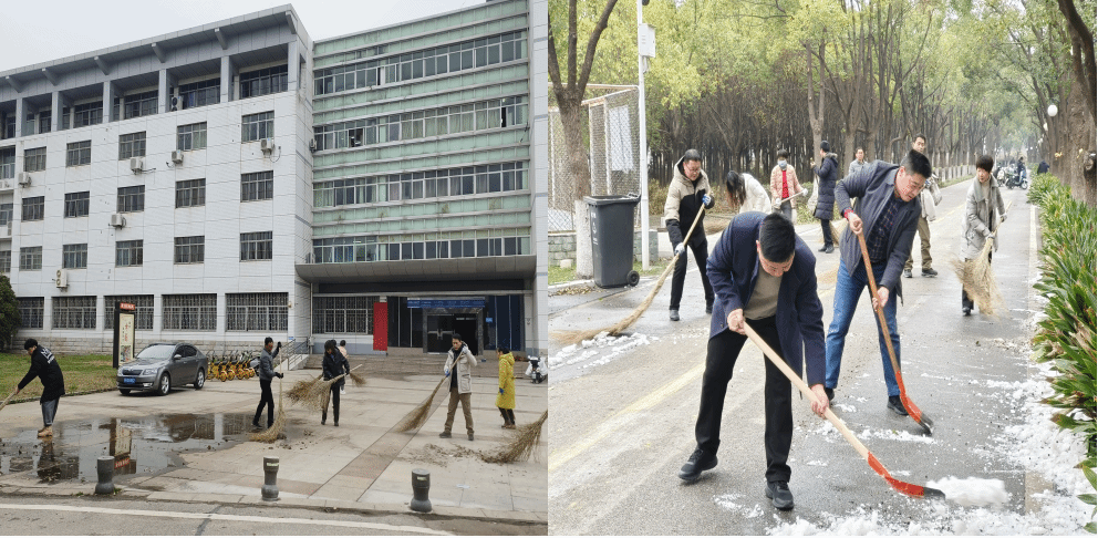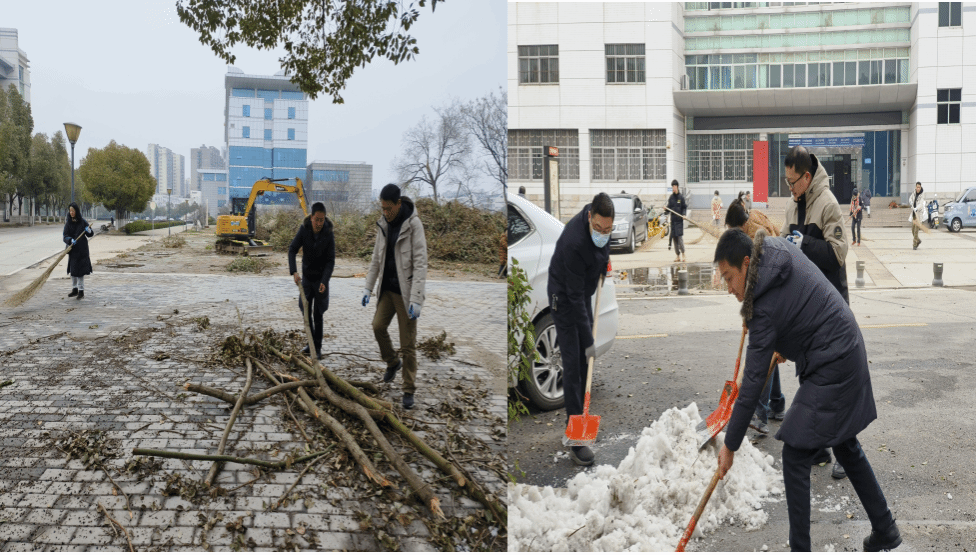 前几日,受强冷空气影响,湖北省内出现了最强大范围寒潮、低温雨雪冰冻天气,孝感市出现持续低温阴雨(雪)天气,造成校园内树枝损毁、路面结冰等影响。尤其是学校的主干道湖西路,因道路两侧树林密布,积雪尚未完全融化,断枝落叶也较多。开学在即,学校环卫工人超负荷运转清理,为了减轻他们的劳动负担,ok138cn太阳集团教师主动扛起责任,一鼓作气,铲除了经法楼广场和湖西路上的残雪,清理了枝叶和垃圾,进一步畅通了师生们的回校路,重新恢复了学校往日干净整洁的校园面貌。