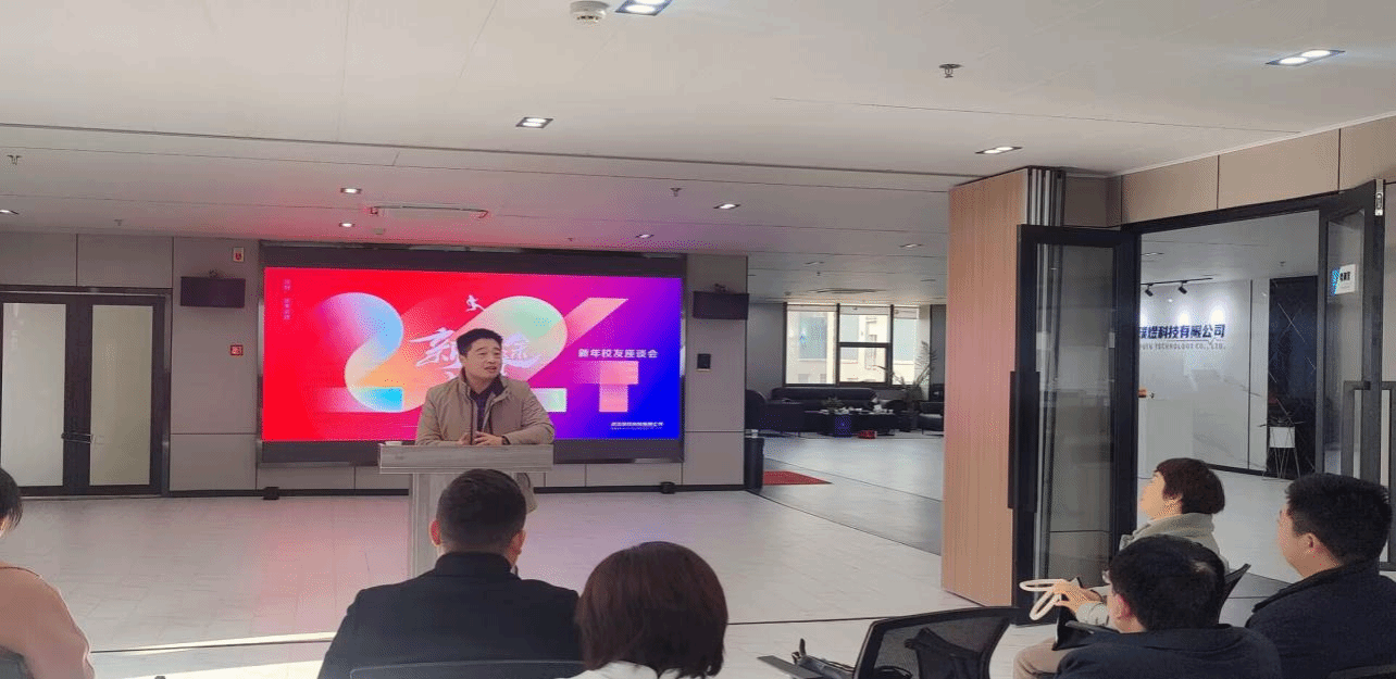 夏煜校友作为武汉璞煜科技有限公司的负责人致欢迎辞。他对母校老师和校友学长的到访表示热烈欢迎,并对母校多年来给予的关心和支持表示衷心感谢,希望通过此次座谈会能够与校友、老师深入交流,共同探讨合作发展的新机遇。