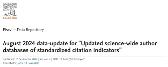 “全球前2%顶尖科学家榜单”是由斯坦福大学John P. A. Ioannidis教授团队与Elsevier合作的成果,发布于: