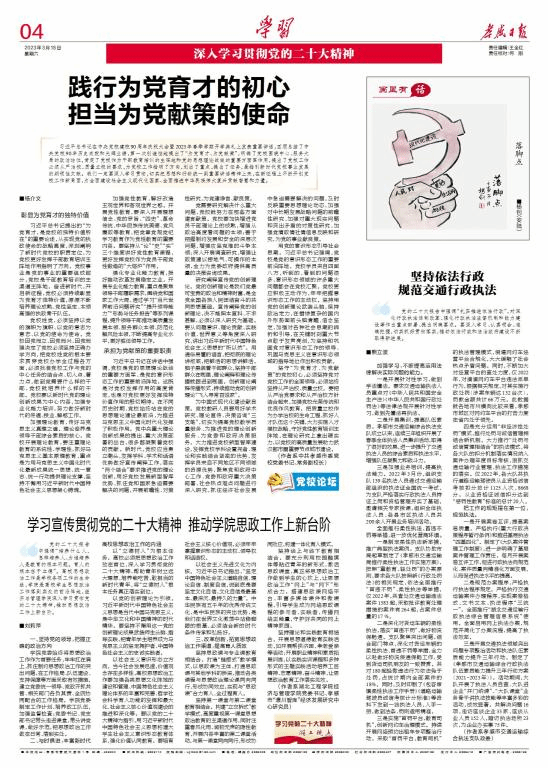党的二十大报告中强调“培养什么人、怎样培养人、为谁培养人是教育的根本问题。育人的根本在于立德”。由此可见高校思想政治工作是学校各项工作的生命线,学院是高校学生思想政治工作落到实处的前沿阵地,ok138cn太阳集团深入学习贯彻党的二十大精神,推动思想政治工作上新台阶。