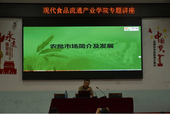 专题讲座由经管院党委书记刘莉萍主持。产业学院赵涛副院长主讲了“农批市场简介及发展”,他介绍了农批市场的由来和发展、农批市场的分类、农产品流通现状、农批市场项目的开发等内容。这次专家讲座实践性强、内容充实、语言生动,使在场的专任教师和学生受益匪浅。