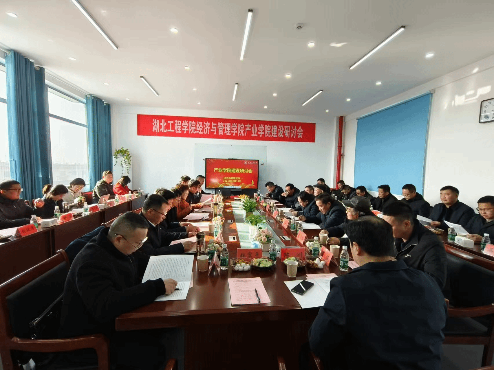 随后,院长黄宏磊对产业学院的建设情况进行了详细汇报。他介绍了产业学院的建设基础、目标定位、主要任务及已取得的初步成果,并指出了存在的问题及未来努力的方向。通过汇报,与会人员对产业学院的建设有了更加全面和深入地了解。