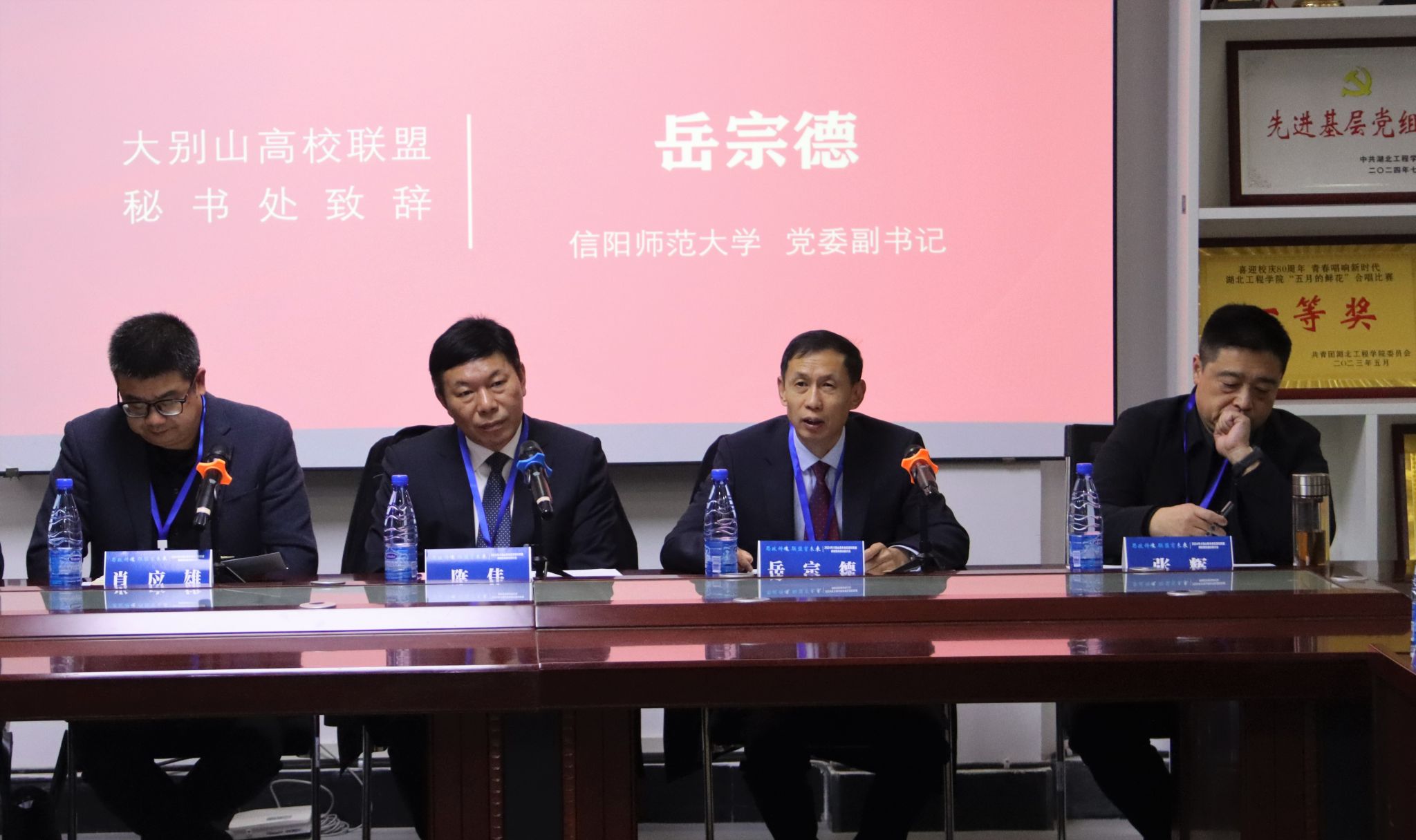 岳宗德代表大别山老区高校联盟秘书处致辞。他指出大别山革命老区高校联盟成立十年来,各高校始终贯彻落实联盟章程,携手共进,广泛开展合作,实现信息共享、资源共享、成果共享、共同发展。