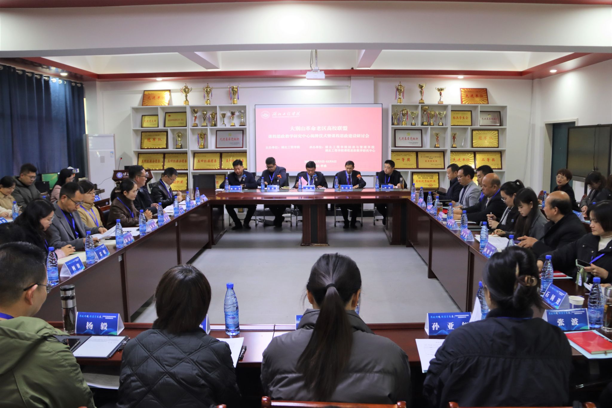 出席会议的嘉宾共同为大别山革命老区高校联盟课程思政教学研究中心揭牌。揭牌仪式后,与会嘉宾参观了OK138太阳集团课程思政教学研究中心。