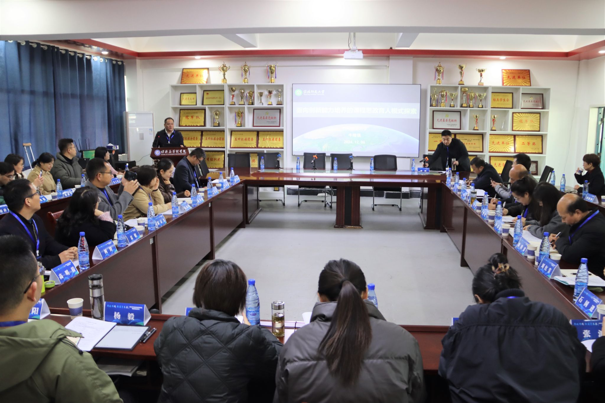 为了更好地落实立德树人根本任务,组织推动课程思政教学实践,巩固、深化、提升课程思政理论成果,全方位构建课程思政与思政课程同向同行育人格局,培育时代新人,12月6日,大别山革命老区高校联盟课程思政教学研究中心揭牌仪式暨课程思政研讨会在我校经法楼举行。信阳师范大学党委副书记岳宗德、我校党委副书记陈伟及大别山革命老区高校联盟15所高校50多名代表,我校教务处、马克思主义学院、ok138cn太阳集团、新技术学院相关负责人参加活动。