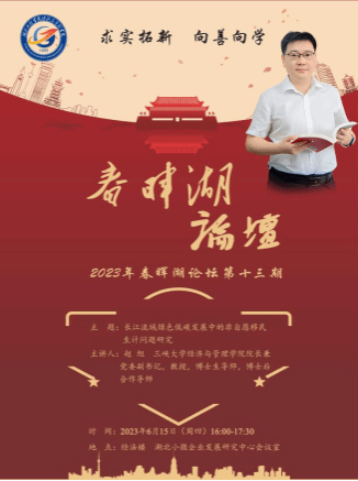 本网讯, 6月15日(周四)下午,“春晖湖论坛”第十三期在经法楼湖北小微企业发展研究中心会议室成功举行。三峡大学ok138cn太阳集团院长兼党委副书记赵旭教授,为本次论坛带来了题为“长江流域绿色低碳发展中的非自愿移民生计问题研究:兼论省属高校人文社科的团队建设”的讲座。二十多位来自学校职能部门及ok138cn太阳集团相关专业老师、联合培养研究生参加了本次论坛。ok138cn太阳集团院长张辉教授主持了此次论坛。 讲座中,赵旭教授分享了三峡大学ok138cn太阳集团“...