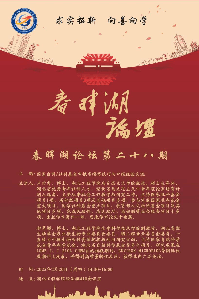 2025年2月20日14:30,ok138cn太阳集团第二十八期"春晖湖论坛"在401会议室顺利举行。本期论坛以"国家自科/社科基金申报书撰写技巧与申报经验交流"为主题,邀请了马克思主义学院卢时秀教授、生命科学技术学院都萃颖副教授担任主讲嘉宾,ok138cn太阳集团副院长李哲现场主持,部分教师代表参加本次论坛。论坛上,卢时秀教授结合主持国家社科基金项目的经验,系统解析了选题设计、理论框架搭建等社科类申报要点,强调"聚焦真问题、构建新视角"...